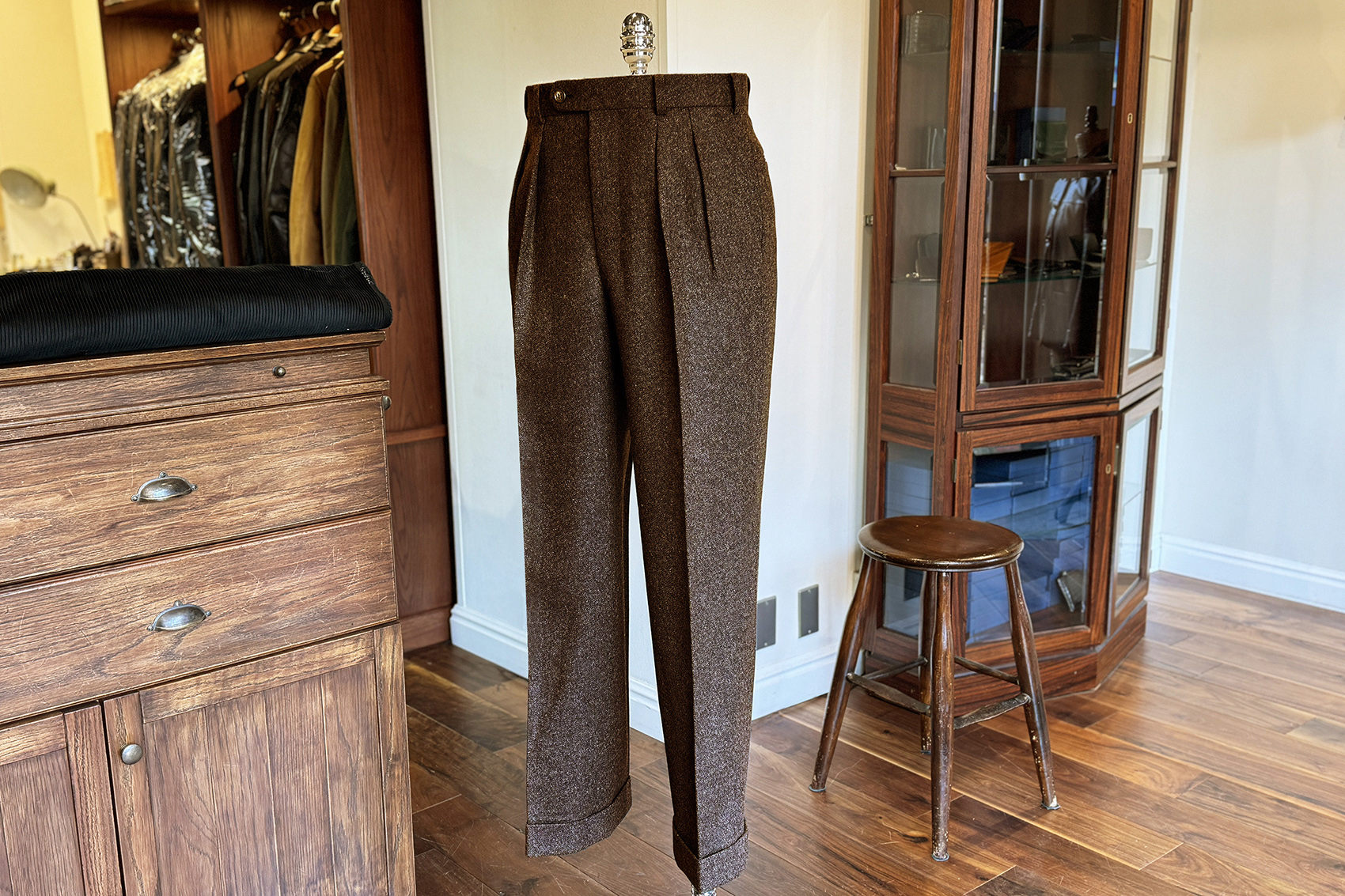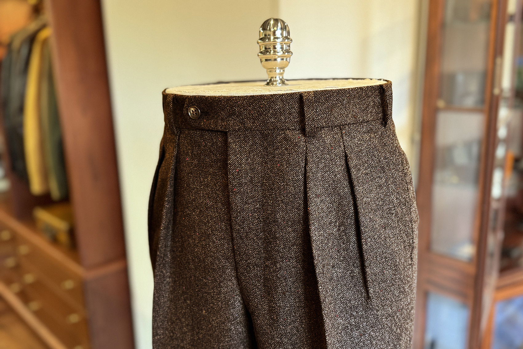 使用している素材は、スコットランド産Porter & Hardingのネップツィード。