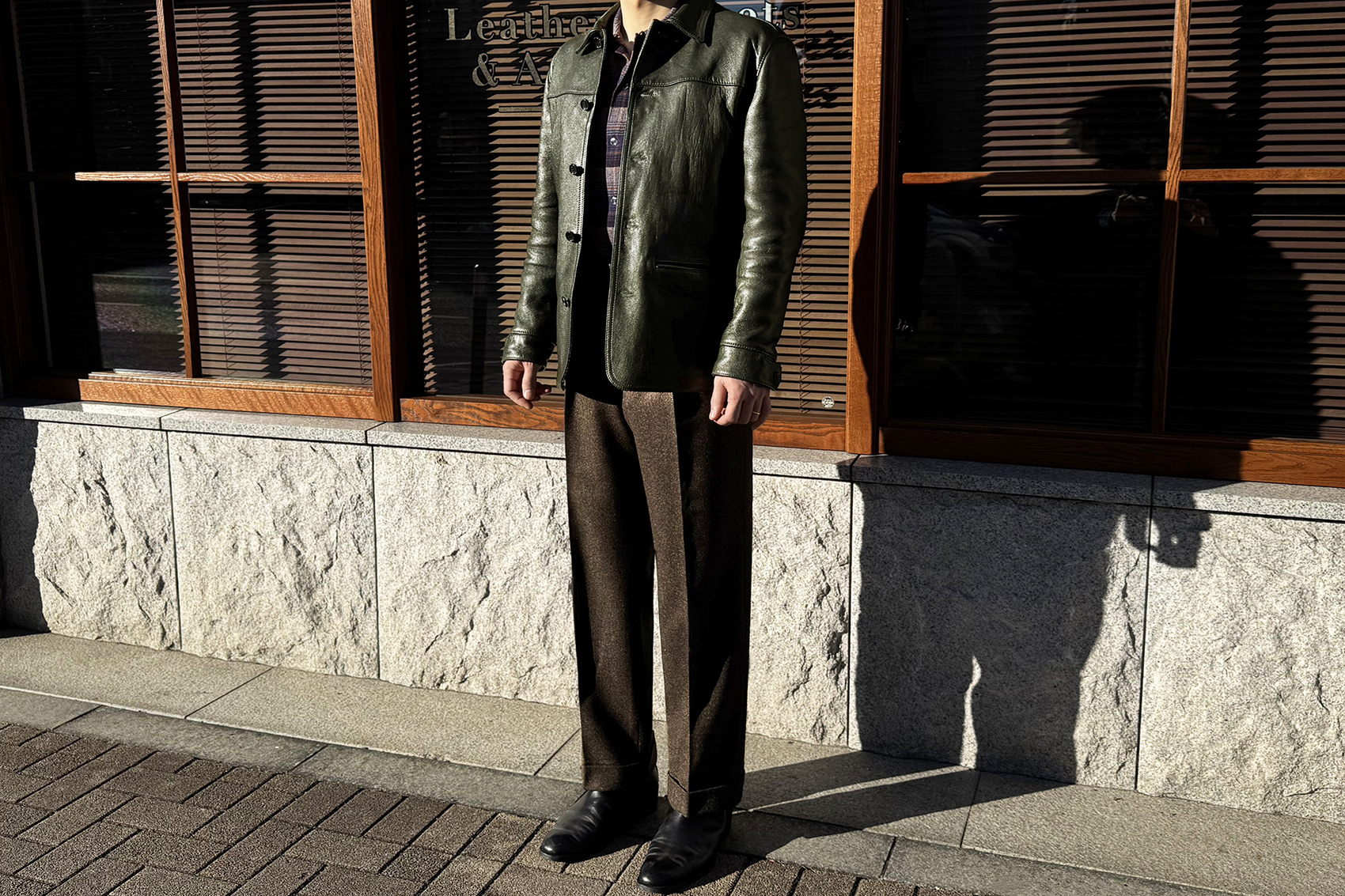 今週はご注文のレザージャケットと完成したトラウザーズのご紹介