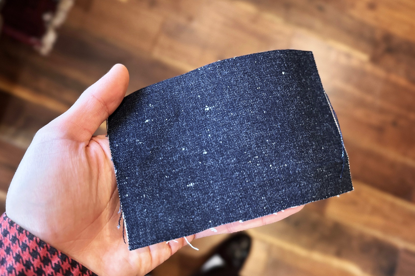 ここのツィードの大きな特徴は、一般的なツィードに対して質感は少しさらっと仕上がっています。布の密度が高く、触ってみると耐久性が明らかに高いことが分かります。
