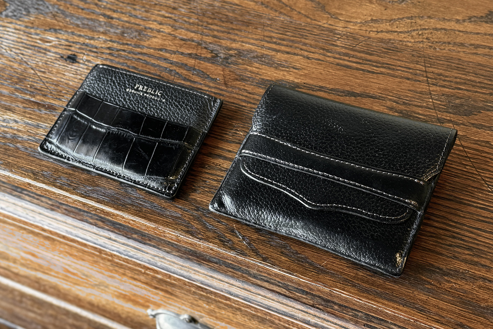 それから、左は約4年使用したPLET - Saddle Pull-Up x Crocodile、右は約6ヶ月使用したLOM - Saddle Pull-Up SD col.Black。