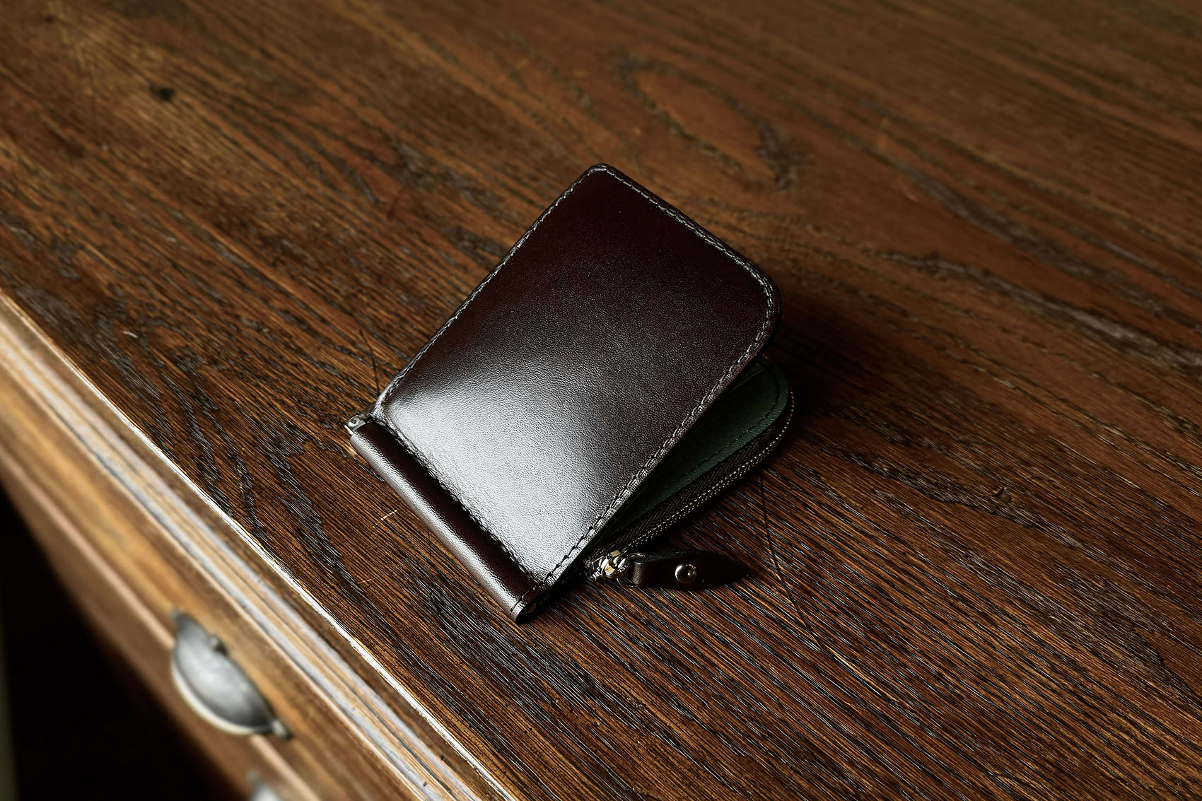 まずは、マネークリップウォレットのTHOMAS - Saddle Pull-Up col.Dark Brownです。