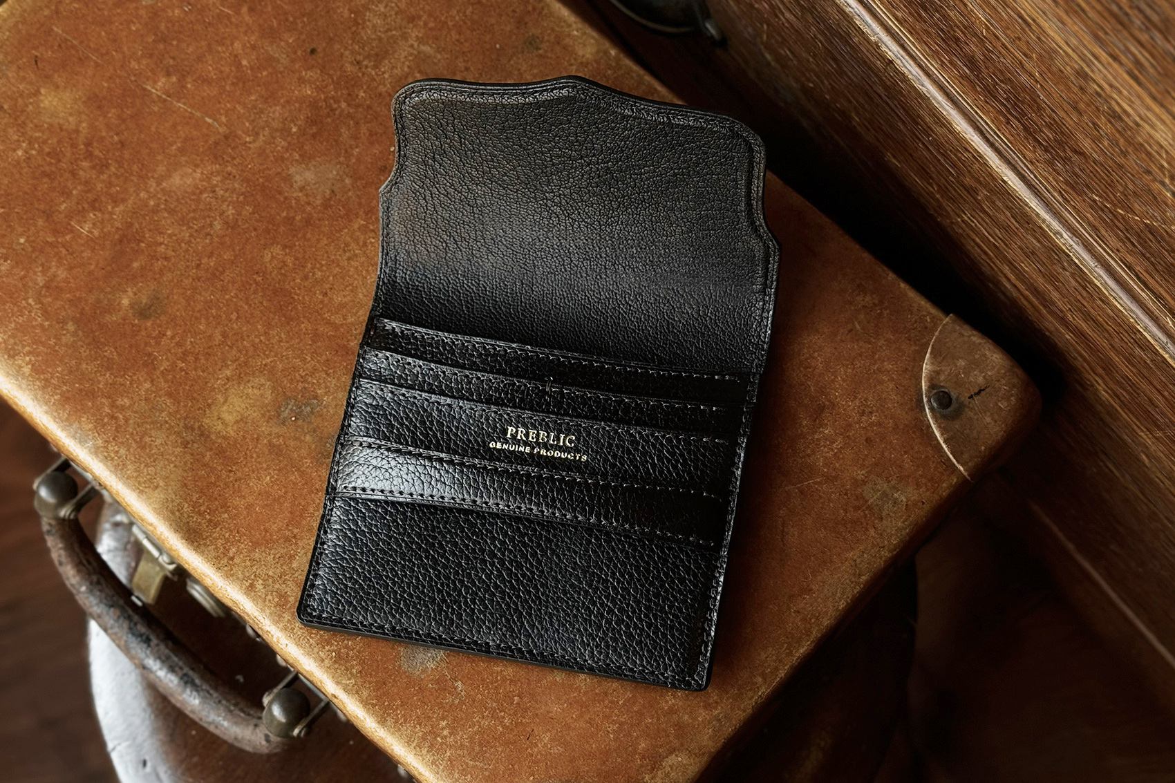 クラシカルなフラップを開けると、カード室と紙幣室。