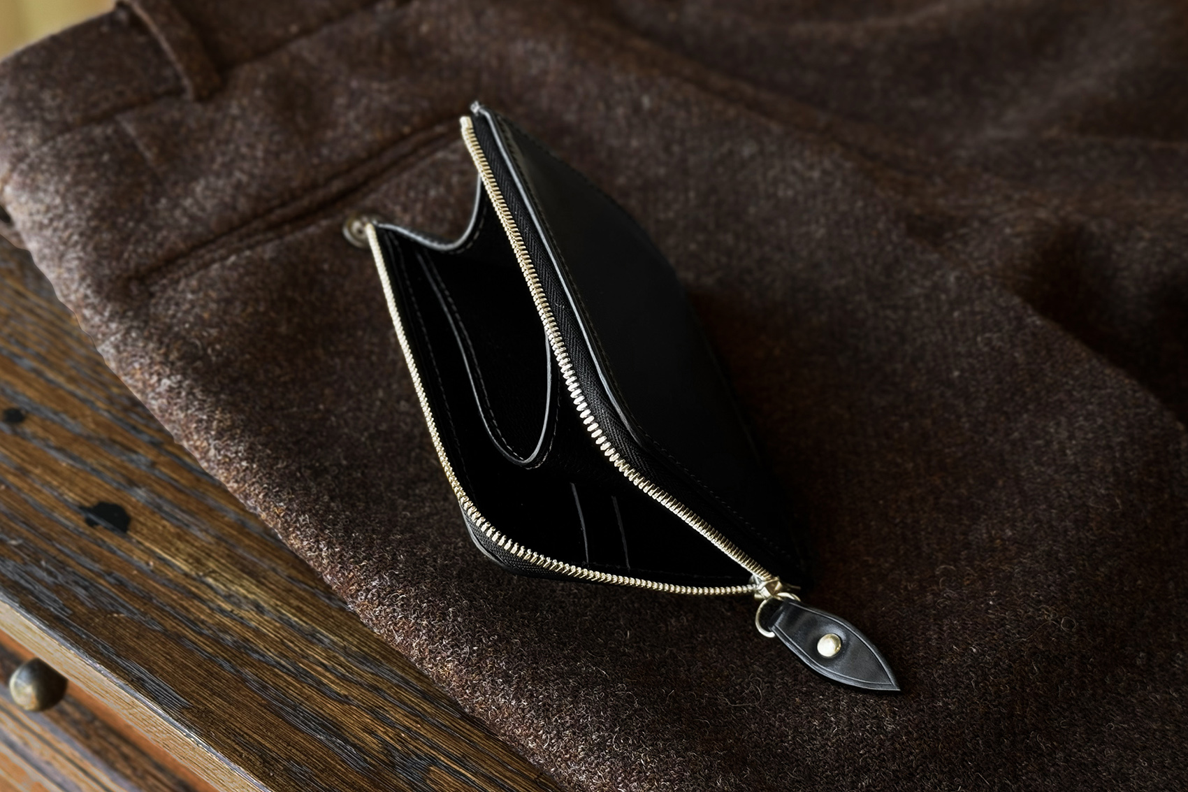 そして、L字型ウォレットのKONETT - Horween Shell Cordovan col.Black。